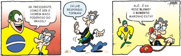Eu simplesmente adoro as tiras de humor! O Topman nasceu nas tiras... Na verdade, como artista, prefiro muito mais desenhar tirinhas que histórias em quadrinhos! Gosto do poder de síntese delas, do humor rápido e direto!